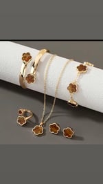 Clover flower five piece set gold plated necklace, bracelet, ankle bracelet, earrings and ring