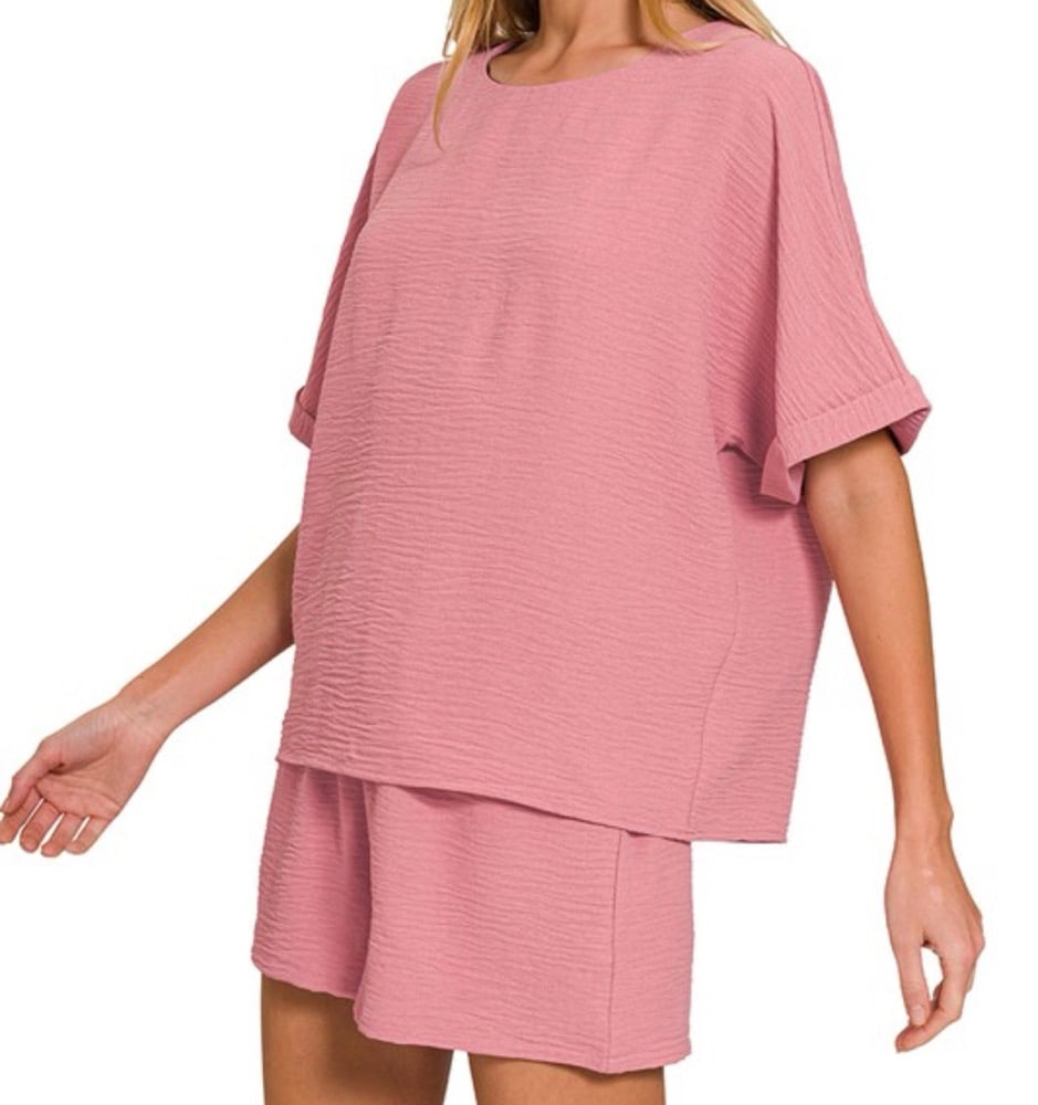 Woven airflow top & shorts set